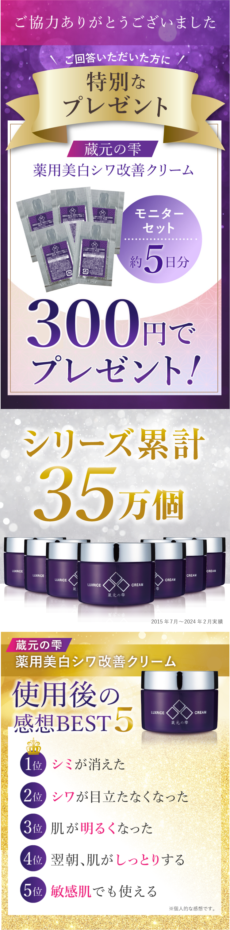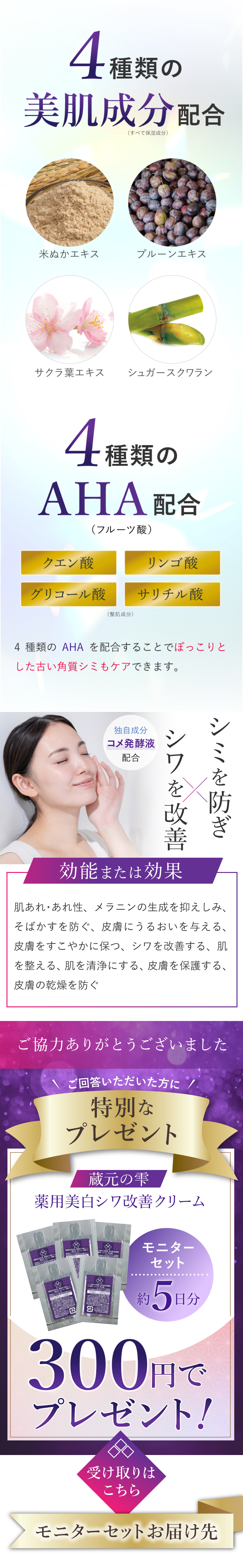 美白やシワ改善の有効成分が配合されているので効果が期待できそうだ。