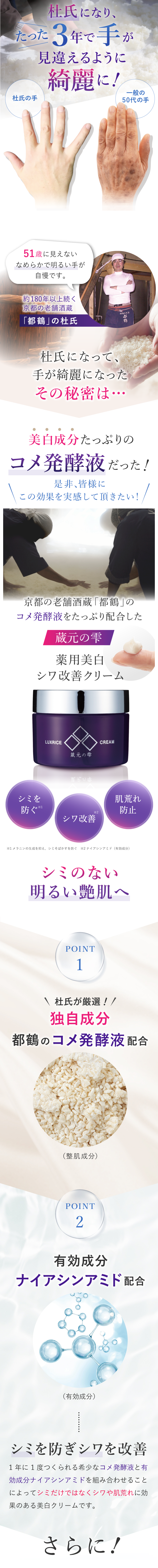 老舗のコメ発酵液を配合しているので効果が期待できそうだ。